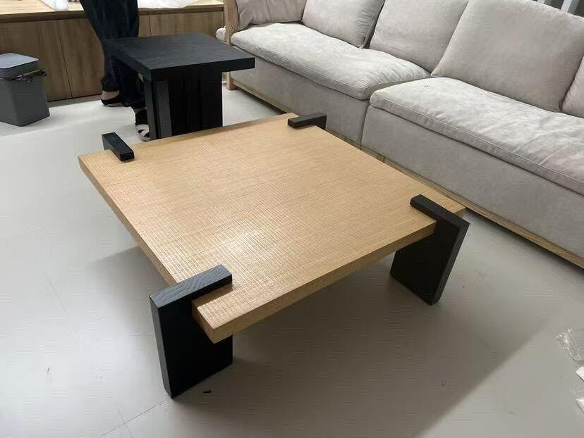Elevate your living space with this modern minimalist coffee table, crafted from premium solid wood and supported by sleek black metal legs. The natural wood grain brings warmth and character, while the sturdy metal frame ensures long-lasting durability and stability.